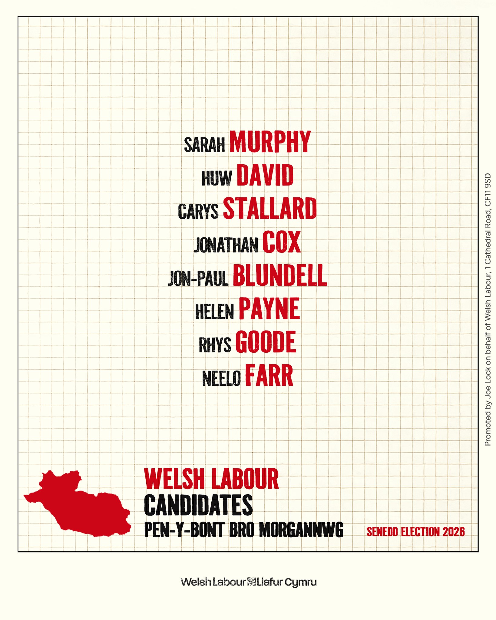 Delighted to be a list candidate for Welsh Labour in Pen-y-bont Bro Morgannwg